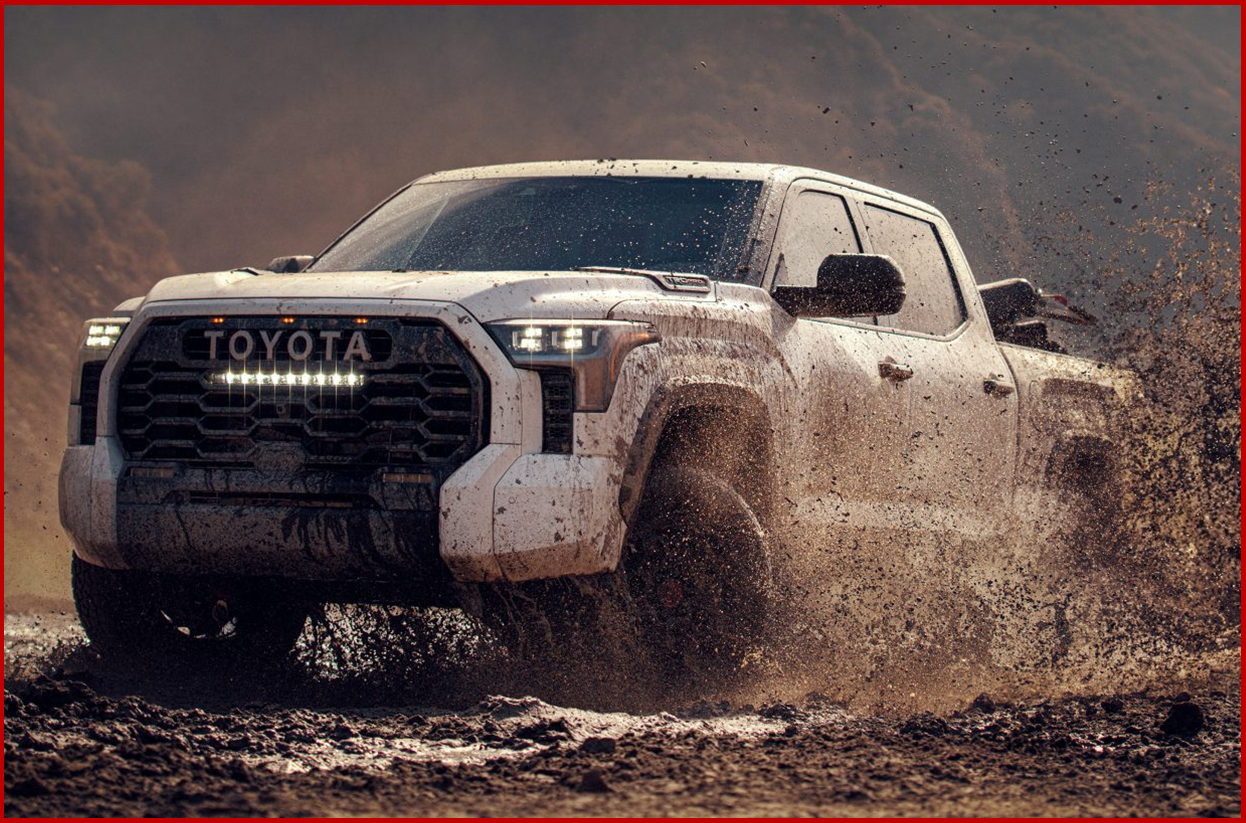Tundra pickup truck, which will be in its third generation when it debuts later this year as a 2022 model has a new twin-turbo 3.5-liter V6 engine is rated at 389 horsepower and 479 lb.-ft. of torque. When paired with a >marketing babble alert> ”brilliantly engineered bell-housing motor system called the i-FORCE MAX, the result is a combined performance output of 437 horsepower and a whopping 583 lb.-ft. of torque.” Both configurations use the same 10-speed automatic transmission. SR, SR5, Limited, Platinum and 1794 models will eventually be available. TRD Pro will also return to the Tundra lineup, but it will only be offered with the i-FORCE MAX powertrain, whereas i-FORCE MAX will be an option on Limited, Platinum and 1794 models. Other added items include a high-strength boxed, steel-ladder frame, aluminum-reinforced composite bed and redesigned multi-link rear suspension. The result is a competitive Tundra with a maximum towing capacity of up to 12,000 pounds, +11%, and a max payload capacity of 1,940 pounds, +17.6%.