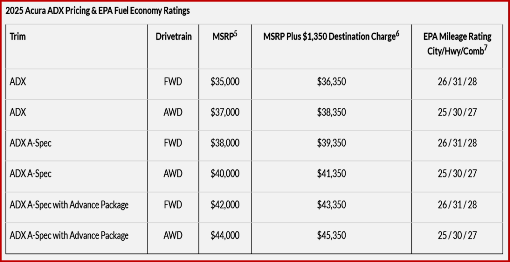 *Inevitable Acura ADX Footnotes