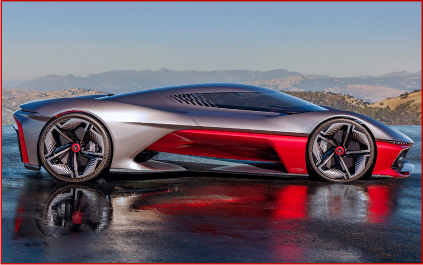 The California Corvette concept is a hypercar that is wide at the wheels with a narrow, tapered cabin and a narrow cockpit – mimicking classic Corvette Coke bottle like proportions. The single-piece front-hinged canopy allegedly changes the vehicle from a sports car to a lightweight, open-air track car.