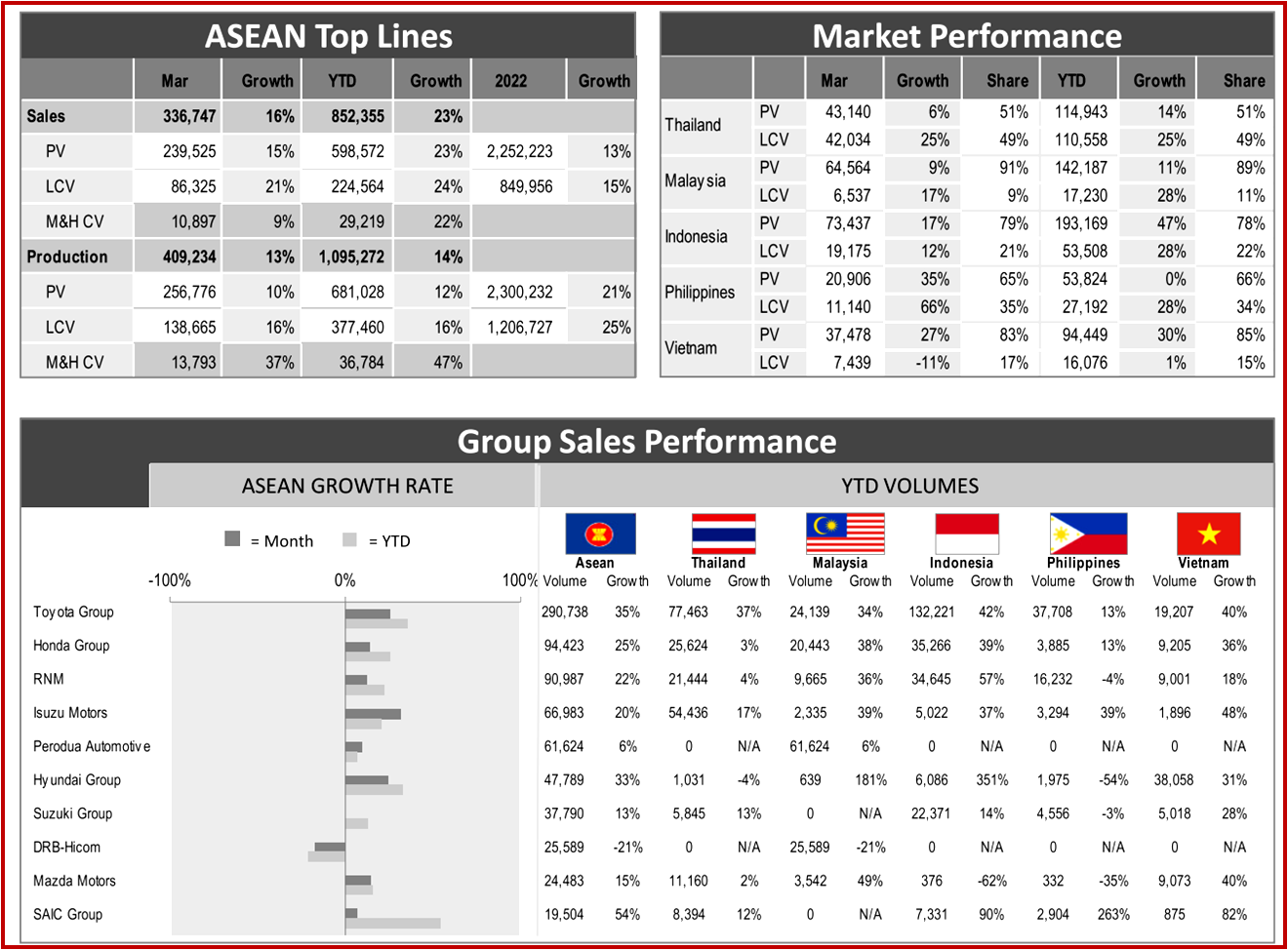 ASEAN LV sales continued to increase in March (+17% YoY and +32% MoM), improving Q1 2021 sales by 23% YoY, according to the LMC Automotive consultancy. LMC attributed this to falling COVID-19 cases leading to normalizing economic activity and mobility in the region. “As a result, overall ASEAN LV sales are now increased to 3.10 mn units, or a 13% YoY increase, this year,” said LMC.
