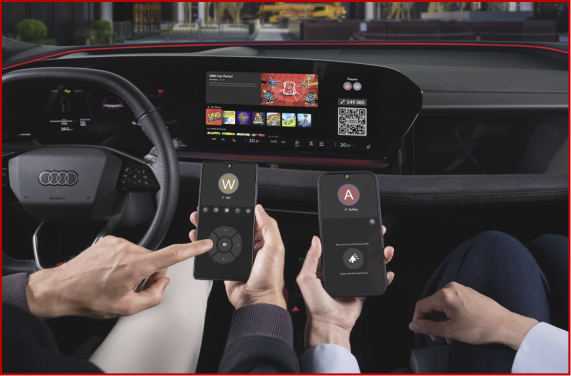 AirConsole interactive gaming platform in an Audi – Courtesy of and Copyright AirConsole July 2025 all rights reserved