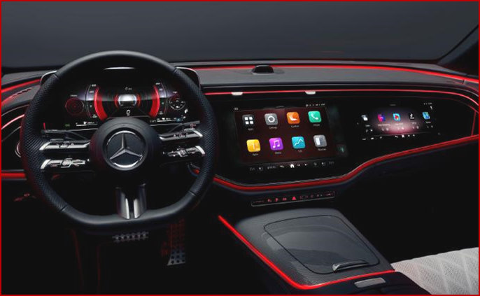 The new E-Class with a new electronic architecture that allows a “comprehensive user experience” using fast data transfer speeds with 5G technology, and myriad new, intelligent functions in interior systems. The entertainment program in the E-Class is more interactive than ever. There is a new compatibility layer that allows the installation of third-party apps4. The following apps are available on the central display at launch of the E-Class5: TikTok, the game Angry Birds, the collaboration app Webex, the video conferencing app Zoom and the web browser Vivaldi. In addition, the optional ZYNC entertainment portal6 offers video streaming, on-demand content, interactive experiences, sports, news, games and much more on the central and passenger displays, via one user interface.
