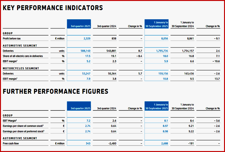 BMW Group Financial Results Q3 and YTD 2025 – Courtesy of and Copyright BMW 5 Nov. 2025 all rights reserved