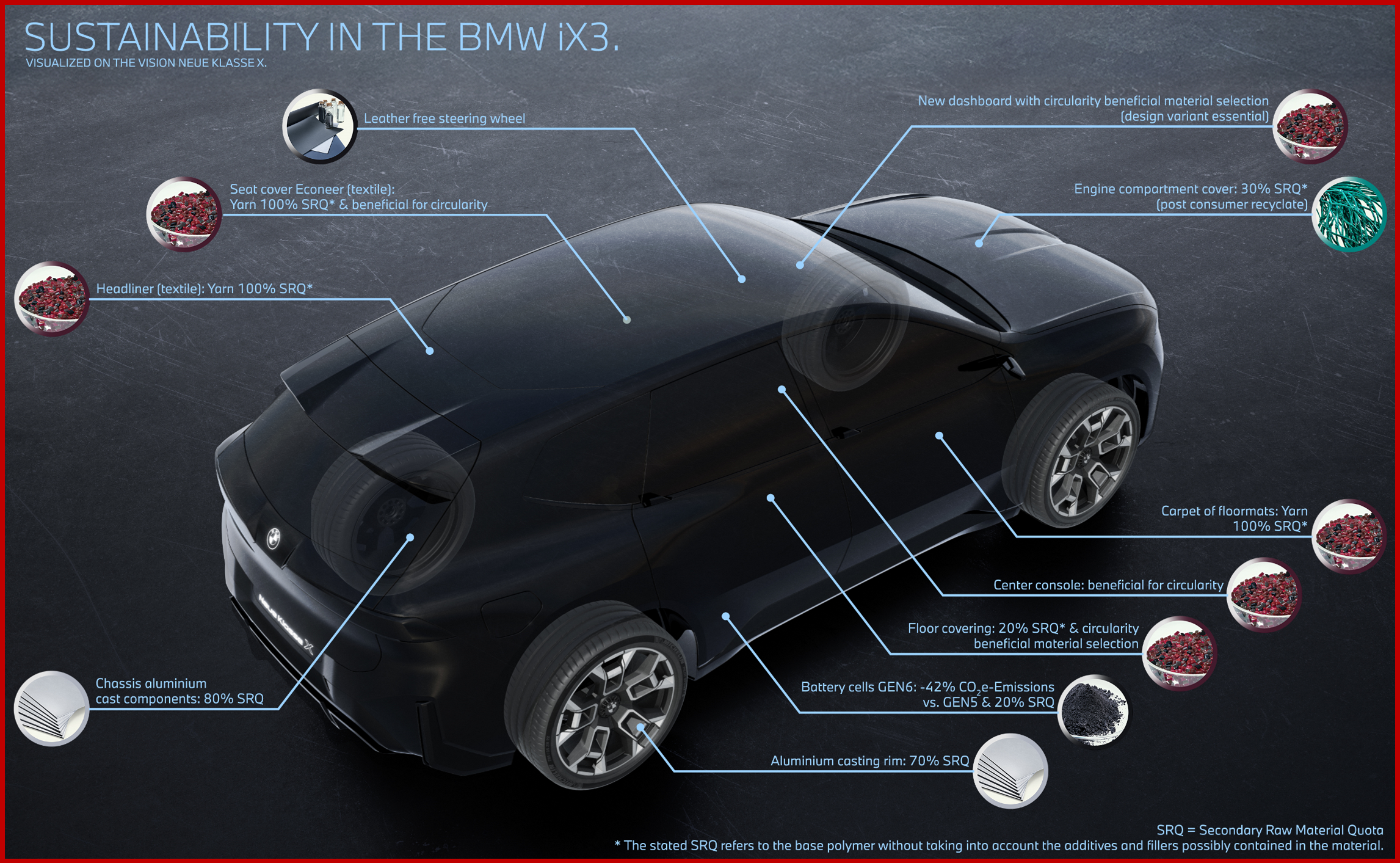 “The BMW Group is increasingly focused on the use of innovative and secondary materials in other components as well. For instance, 30% of the secondary raw material used for the engine compartment cover and the storage compartment under the front hatch is recycled maritime plastic. This post-consumer material consists of old fishing nets and ropes, preventing these materials from potentially being dumped in the ocean. Secondary aluminum accounts for 80% of the wheel carriers and swivel bearings as well as 70% of the cast aluminum wheels,” BMW said.