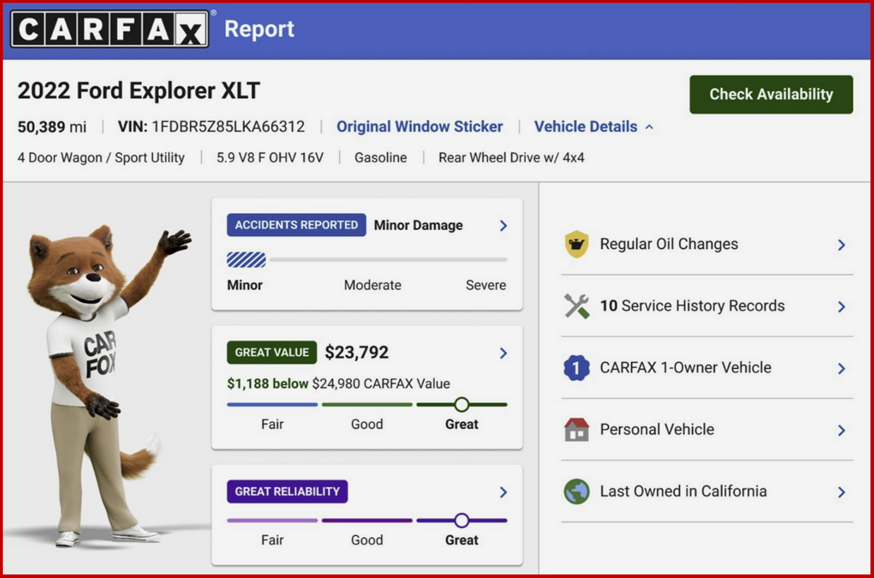 • Future Reliability: Insights only CARFAX can provide, helping consumers understand future dependability, needed to help them confidently choose the right vehicle