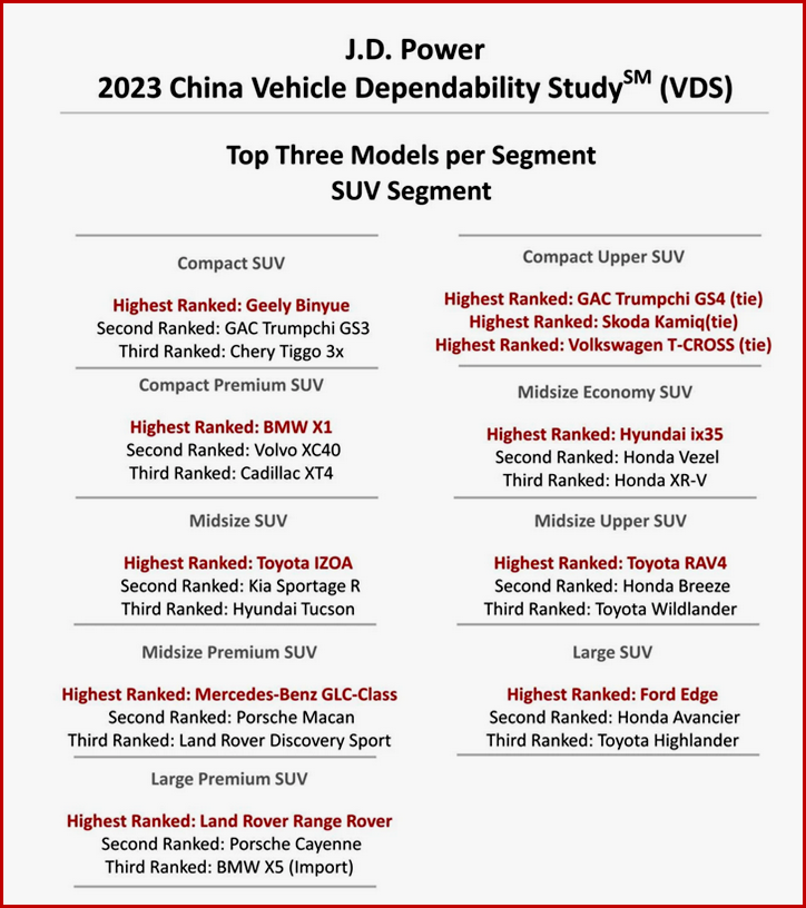 J.D. Power 2023 China Vehicle Dependability Study – courtesy of and copyright J.D. Power all rights reserved.
