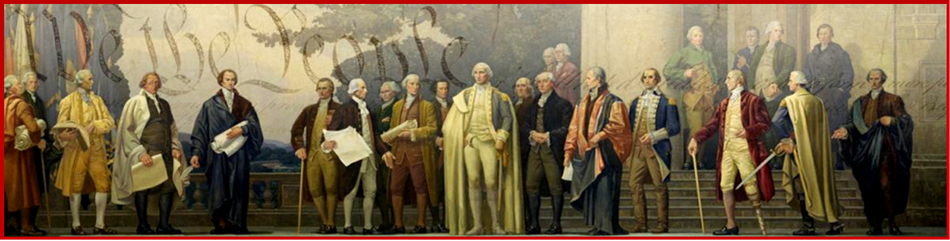 George Washington about to receive the draft of the Constitution from James Madison. Mural by Barry Faulkner in the National Archives Building in WADC – Courtesy of and Copyright the National Archives