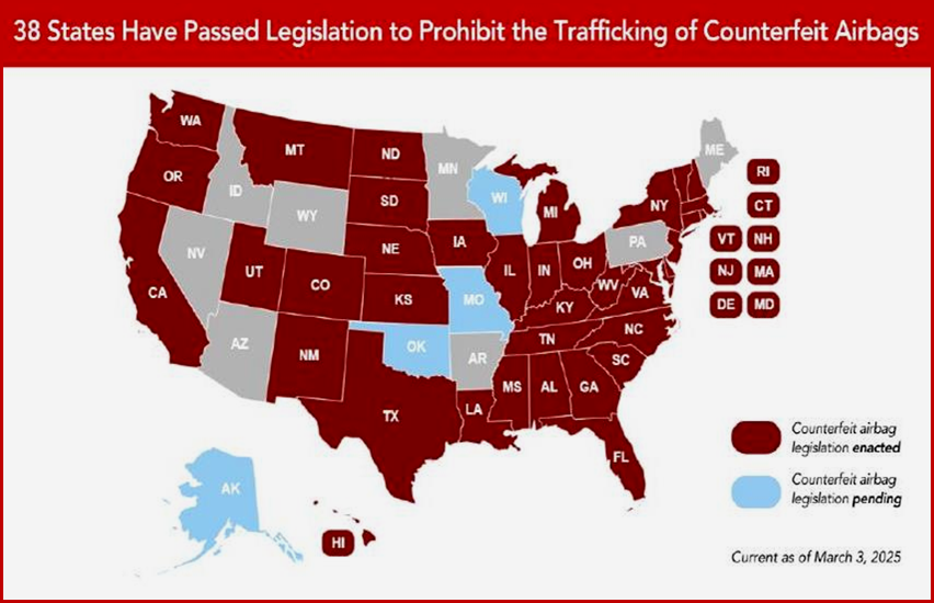 “Undoubtedly, these actions save lives, but the best solution is to stop these fake airbags from reaching the market in the first place. To do that, we need to give law enforcement the tools and authority they need to act. That’s why Honda has been at the forefront of a national effort to expand the narrow authority law enforcement currently has, primarily under federal trademark law. I’m proud to say we’ve made significant progress: 38 states have adopted our model legislation prohibiting the trafficking of fake airbags. However, with consumers in 12 more states still unprotected, and the fact that vehicles frequently cross state lines, we still have work to do.