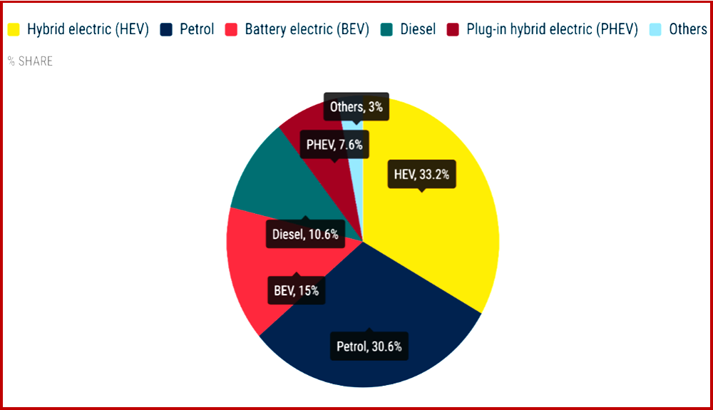 • Hybrid-electric registrations increased by 18.5% in November, with market share rising to 33.2%, up from 27.5% last November, exceeding petrol car registrations for the third consecutive month.
