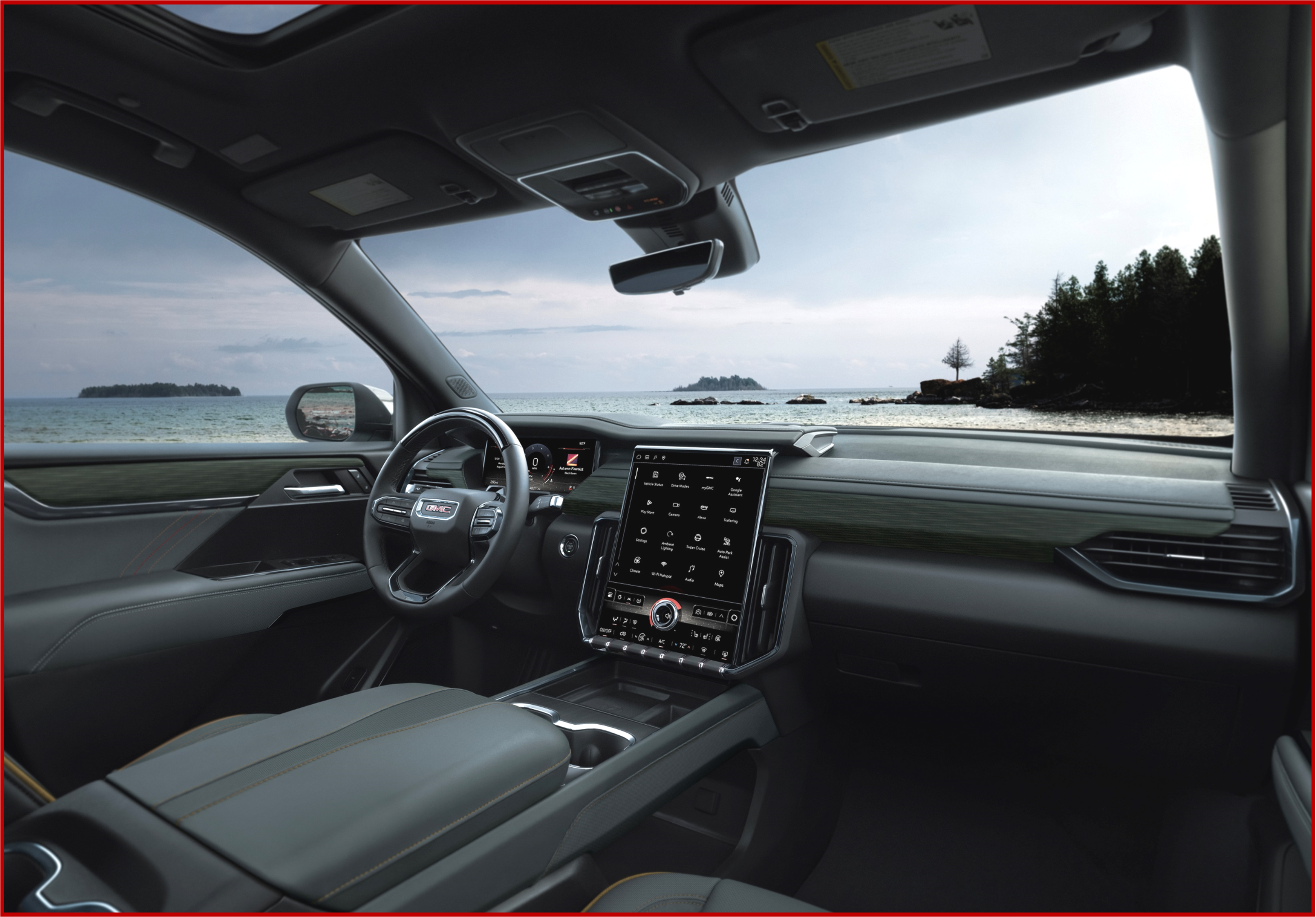 The 2024 Acadia has an all-new interior with updated technology integration and in GMC’s view premium appointments. The heart of the interior is a portrait-oriented 15-inch-diagonal GMC infotainment system4 display, which is standard across all trims. System highlights include: