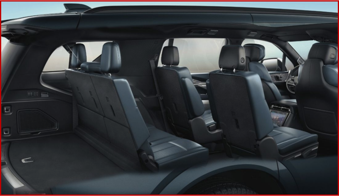 The interior continues luxurious accommodations found in the Escalade IQ, including an optional Executive Second Row package. The Executive Second Row package has stowable tray tables, 12.6-inch-diagonal personal screens, a rear command center, dual wireless phone charging pads and massaging, heating, and ventilated seats, which also offer 14-way power adjustment and headrest speakers. The 3rd row has more than 4 inches of additional legroom (36.7″ vs. 32.3″), and an additional inch of headroom (38.2″ vs. 37.2″).