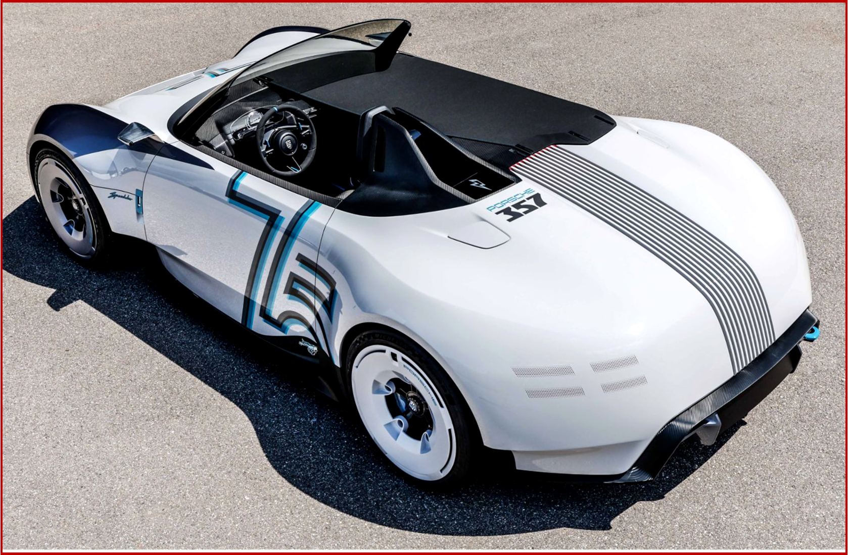 Another nod to what was the first Porsche model line is the vertical grille pattern in the rear. The third brake light is integrated in the grille design. The 20-inch wheels are made of magnesium and are equipped with carbon fiber hubcaps and central locks. Visually, they also recall a legendary Porsche wheel: the 356 A and 356 B with drum brakes had rims with the large bolt circle of 205 millimeters.