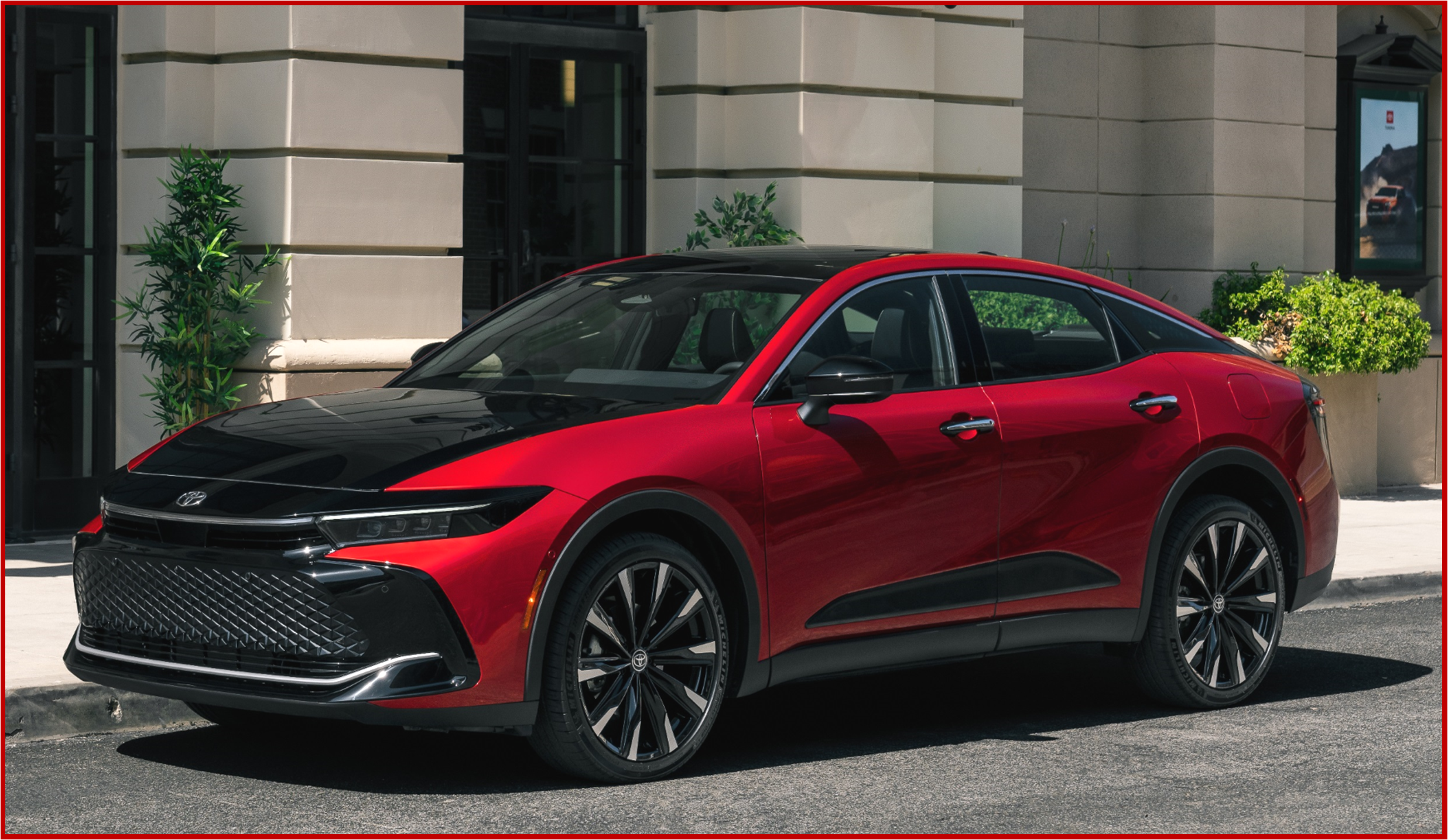 Platinum grade includes everything on XLE and Limited and raises the bar with the HYBRID MAX powertrain, Adaptive Variable Suspension, six selectable drive modes, Advanced Park and unique 21-inch machined 10-spoke alloy wheels with black accents. The color palette adds a Toyota first bi-tone paint option, with black paint that extends from the hood to the trunk, that can be paired with Oxygen White, Heavy Metal, Supersonic Red or an all new, bi-tone only Bronze Age color.