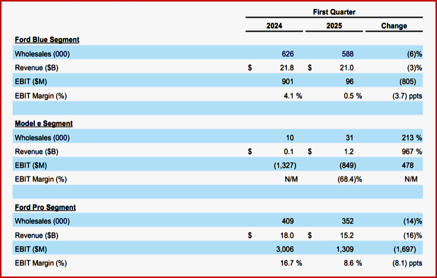 “Ford’s underlying business is strong – tracking within the previous adjusted EBIT guidance range of $7 billion to $8.5 billion, excluding new tariff-related impacts. Based on what the company knows now, and its expectation of how certain details and changes will be resolved related to tariffs, the company estimates a net adverse adjusted EBIT impact of about $1.5 billion for full-year 2025. Given material near-term risks, especially the potential for industrywide supply chain disruption impacting production, the potential for future or increased tariffs in the U.S., changes in the implementation of tariffs including tariff offsets, retaliatory tariffs and other restrictions by other governments and the potential related market impacts, and finally policy uncertainties associated with tax and emissions policy, the company is suspending guidance. These are substantial industry risks, which could have significant impacts on financial results, and that make updating full year guidance challenging right now given the potential range of outcomes. The company will provide an update during the Q2 earnings call. Ford’s annual meeting will take place online at 8:30 a.m. ET on Thursday, May 8,” Ford said.