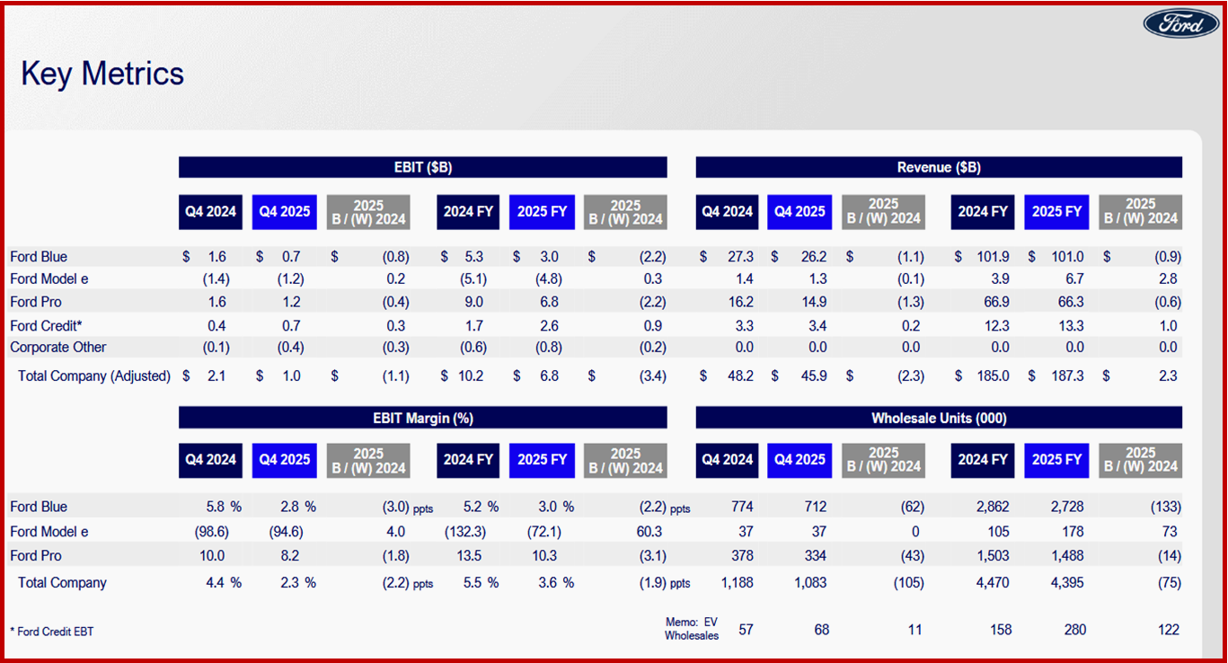 Ford Motor 2025 Q4 and Full Year Financial Results – Courtesy of and Copyright Ford 10 Feb. 2026 all rights reserved