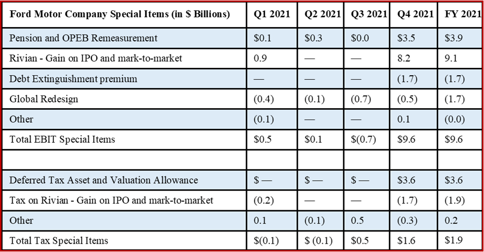 Ford is warning shareholders and the capital markets that the $8.2 billion it earned from its Rivian investment after the public offering will not be included in Ford’s full-year adjusted EBIT or adjusted EPS. When Ford last provided full-year adjusted EBIT guidance with its Q3 results on Oct. 27, a ~$900 million gain was included in the forecast range of $10.5 billion to $11.5 billion.