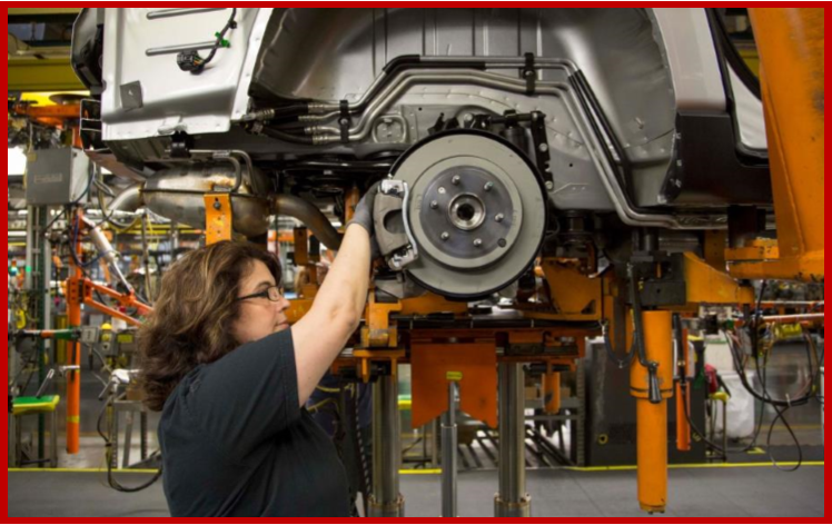 JoAnne Prince, a GM worker for 20 years, installs shocks and brake lines on a 2015 Chevrolet Traverse at the General Motors Lansing Delta Township Assembly plant. GM announced today that it would invest $520 million for tooling and equipment for future new vehicle programs, retaining 1,900 jobs.