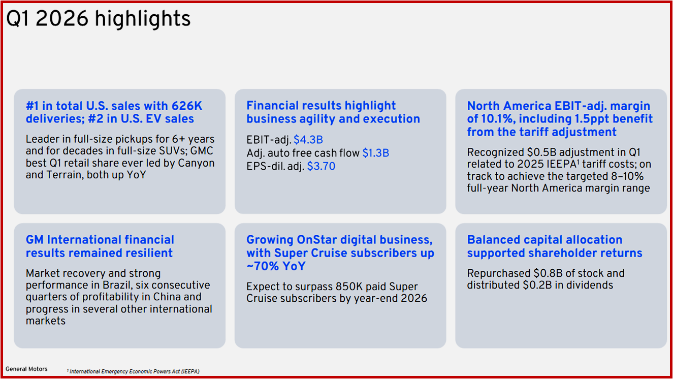 General Motors Q1 2026 Financial Results Highlights – Courtesy of and Copyright GM 28 April 2026 all rights reserved