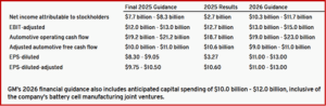 General Motors (NYSE: GM)* today reported full-year 2025 net income attributable to stockholders of $2.7 billion and EBIT-adjusted of $12.7 billion. Fourth-quarter 2025 net income attributable to stockholders was a loss of $3.3 billion, EBIT-adjusted was $2.8 billion. The GM Board announced a dividend at 20% higher quarterly rate, and approved new $6 billion share repurchase authorization. [Earnings per share took a big hit in 2025. Cash flow apparently allows the aggressive dividend increase and share buyback program in what could the least year for the aging – 65 – GM CEO. -AutoCrat]