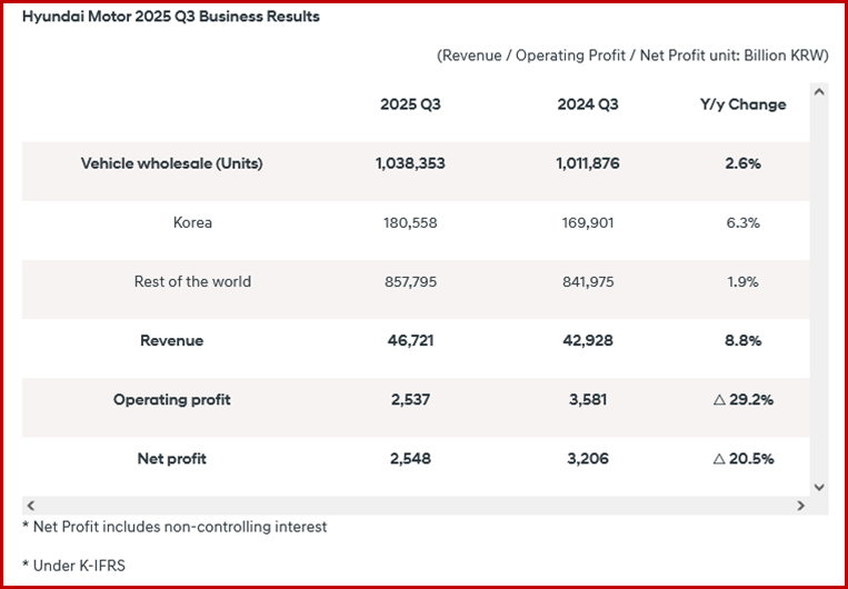 Hyundai Motor sold 1,038,353 wholesale units globally during the third quarter of 2025, a 2.6% increase compared YoY.
