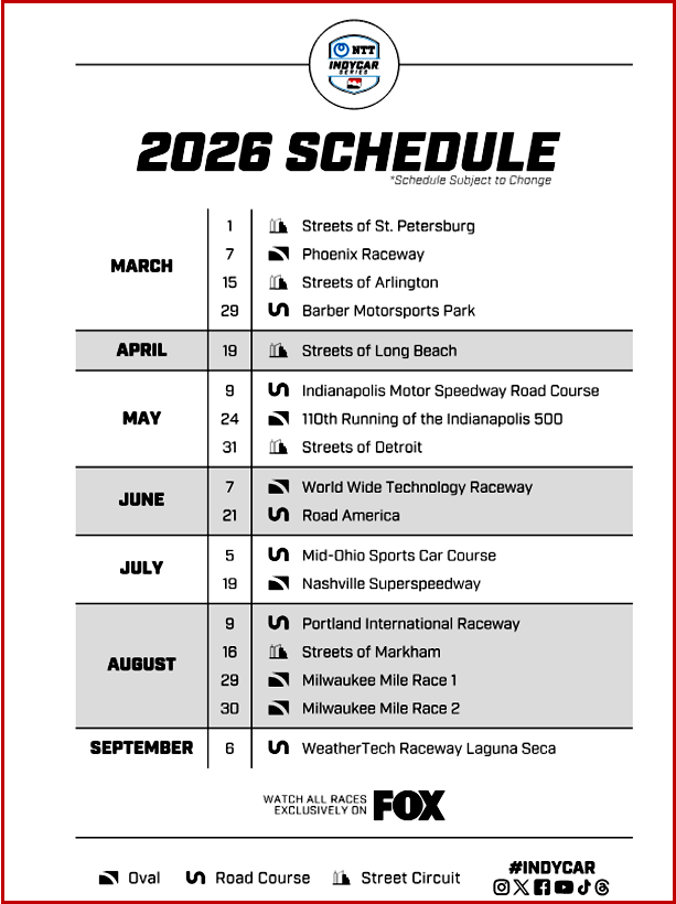 • A set of races on three consecutive weekends to kick off the season, including new events at Phoenix Raceway and on the Streets of Arlington.