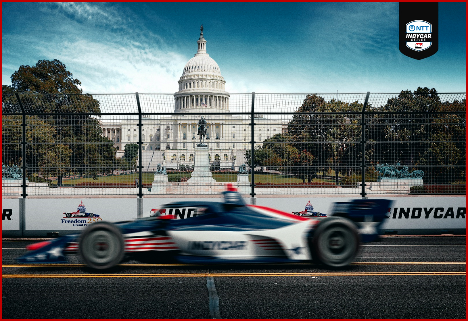 The Freedom 250 Grand Prix will mark the first ever auto race held on the National Mall and the historic city streets of Washington D.C., to celebrate the 250th anniversary of the signing of the Declaration of Independence. The newly revealed road course map is a 1.7 mile, seven turn layout The racing circuit will wind around the National Mall, including some of America’s most historic landmarks.*