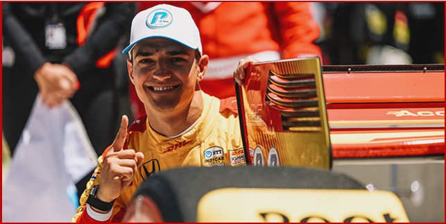 Paulo led 84 of the 95 laps, Palou won on the famous California road course with its downhill corkscrew turn for the second consecutive year, both from the pole, –his third win at Laguna Seca in the past four years.