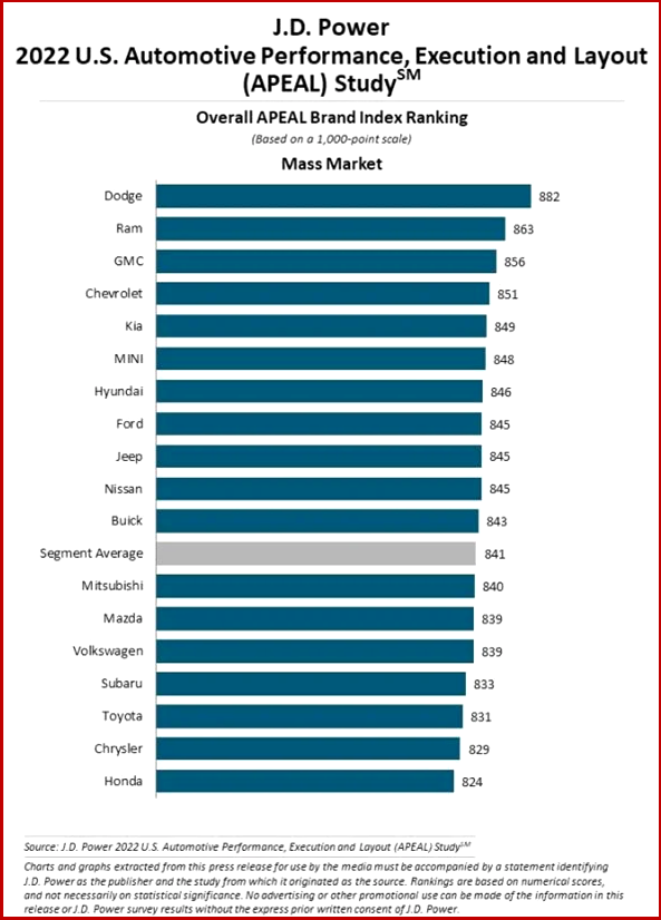 The APEAL Study asks owners to consider 37 attributes, ranging from the sense of comfort they feel when climbing into the driver’s seat to the exhilaration they get when they step on the accelerator. Vehicle owners’ responses to queries about these attributes are aggregated to compute an overall APEAL Index score measured on a 1,000-point scale.