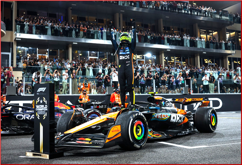 Norris was then told by McLaren on the radio to settle down and ease up a bit now that he was in P3 – a podium position. He did. When the checkered flag dropped he was the Champion. Next year the entire field will have to contend with Verstappen once again.