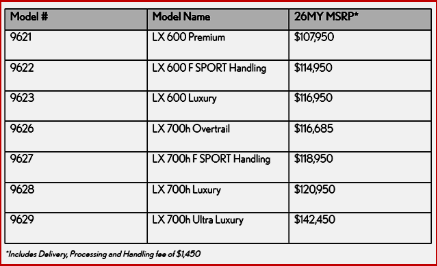 All 2026 Lexus LX models now come standard with Lexus Safety System+ 3.0, which includes: