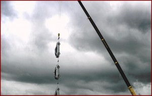 For the final filming, cables and hooks were used to attach the vehicles one at a time to the crane and then to each other. The crew suspended the same vehicles over and over for a period of three days without needing to replace them during the filming.