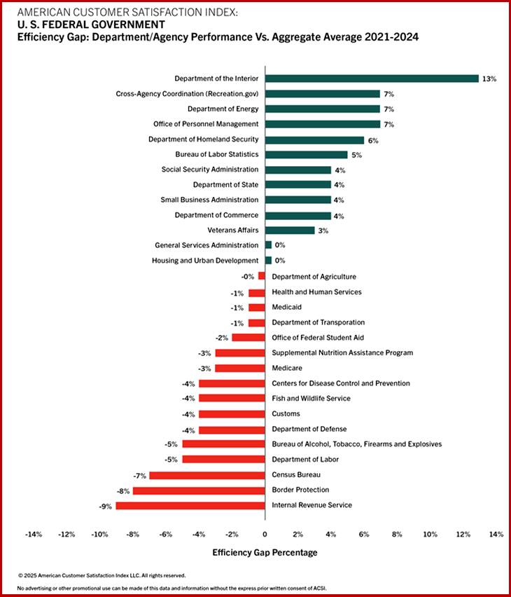 American Customer Satisfaction Index of Federal Departments – courtesy of and copyright ACSI® 20 January 2025 all rights reserved