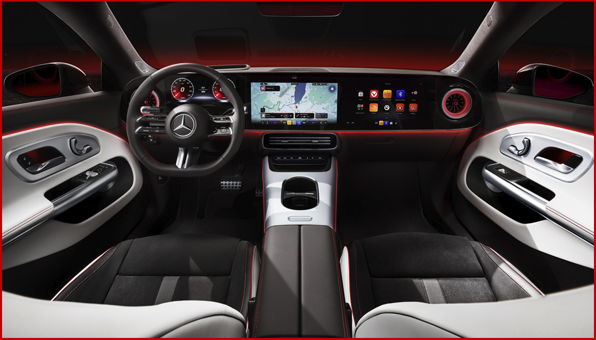 “Numerous opportunities for personalization continue through to the interior of the CLA. MB-Tex/Microfiber, MB-Tex and leather upholsteries are available in a diverse range of styles, in addition to open-pore wood, aluminum and natural fiber trim finishes. The all-new optional MBUX Superscreen features a 10.25-inch driver display, 14-inch central display and an additional 14-inch display for the front passenger – behind a large glass surface. The optional Burmester® 3D Surround Sound System (16 speakers, 850-watts) further elevates the in-car entertainment experience with Dolby Atmos® technology and sound personalization.