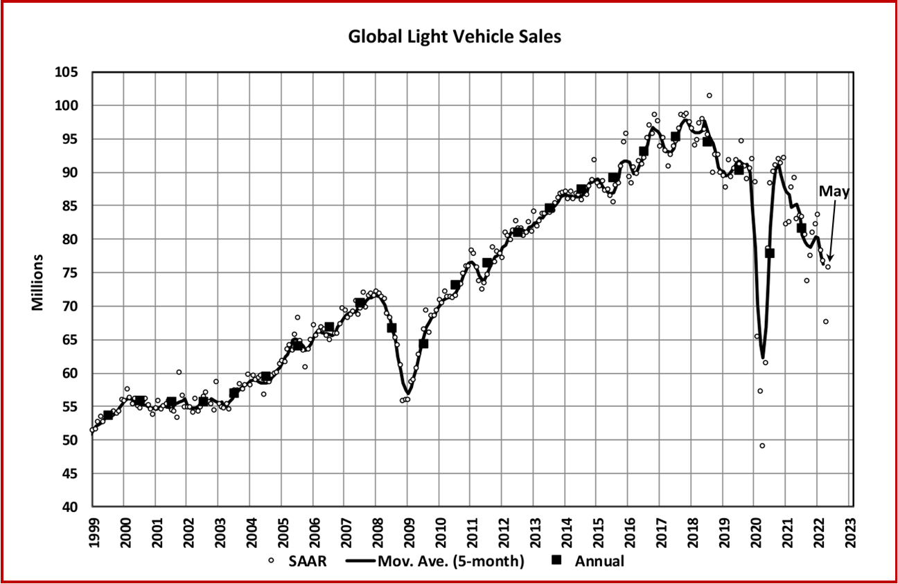 In year-over-year comparison terms, sales were down 10%. In China, the reopening of manufacturing facilities in mid-April supported a rebound in sales for a moment. In the US, the industry is beset with problems, many of them self-inflected, including record high transaction prices, low inventory, and low incentives.