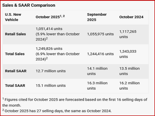 • Retail buyers are on pace to spend $46.1 billion on new vehicles, down $2.0 billion from October 2024.