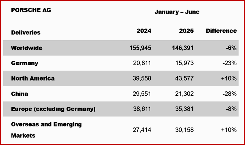 During the first half of the year, 45,137 Macan models were delivered to customers (+15 %). Roughly 60%of these (25,884 vehicles) were the fully electric variant. In most markets outside the EU, the combustion-engine Macan continues to be offered, with 19,253 of them delivered. The Panamera had 14,975 deliveries, a 13% increase.