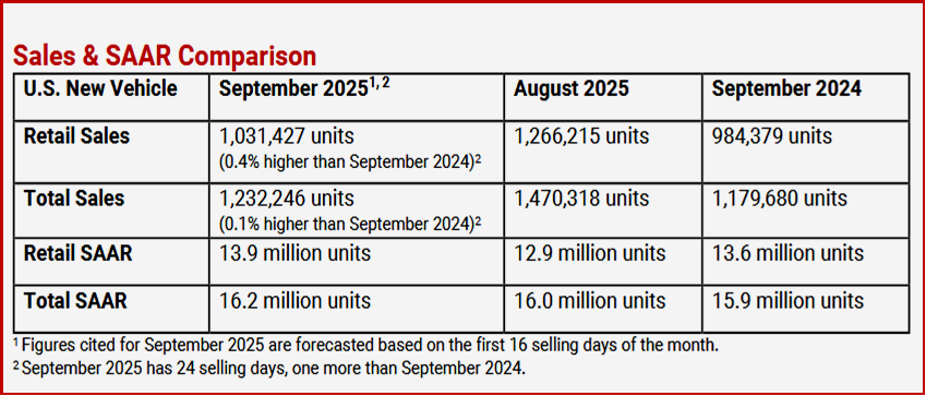 • The average new-vehicle retail transaction price in September is expected to reach $45,795,up $1,310 from September 2024. Transaction price as a percentage of MSRP fell to 89.2%, down 0.5 percentage points from a year ago.