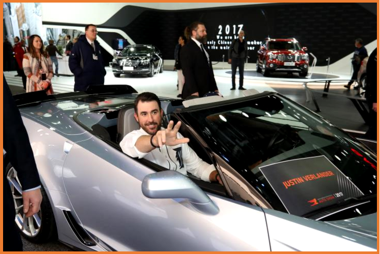Detroit Tiger Ace Justin-Verlander at the 2017 NAIAS in a Chevrolet Corvette – an Ace in its own right.