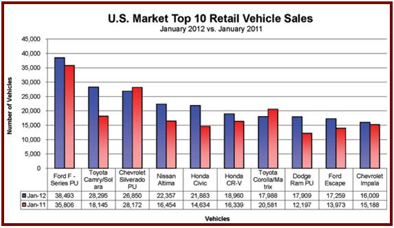 Toyota was therefore once again Number Three overall in U.S. sales having displaced Chrysler Group last fall as Toyota, Lexus and Scion inventories rebuilt post natural disasters. Worth watching during Q1 is Toyota, which was a mere 12,000 vehicles behind Number Two Ford Motor. Toyota truck production in the U.S. – the last to recover from last year’s natural disasters – still has not caught up with demand. When it does – and Toyota’s pickup truck plant in Texas has been working overtime since late last year – Toyota could easily surpass an under-performing Ford in U.S. sales.