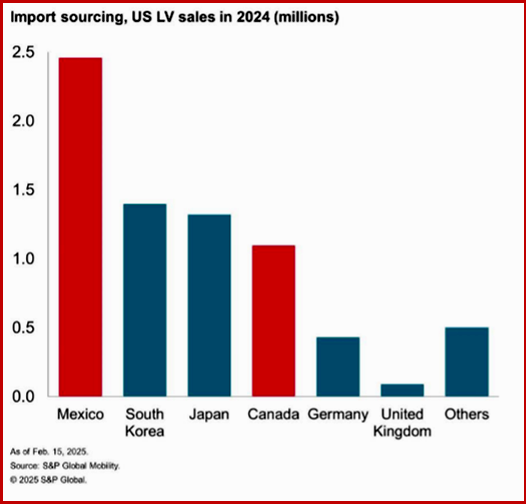 Shoot from the lip President Trump, aka Calamity Donald, today imposed tariffs of 25% across North America disrupting the North American auto market that has thrived on 30 years of free trade. Any new tariffs in place for any significant length of time will be disruptive. The tariffs at 25% are significantly higher than the profits made by the automakers and their suppliers. It is widely – if not universally – held by economists that this is an economic disaster. The tariffs are a sharp violation of the free trade deal with Canada, Mexico and the United States that Calamity Donald, renegotiated during his first administration. Using the dispute-settlement system to eliminate or adjust the tariffs could take years. Calamity Donald has already said he won’t act on any ruling against the United States. Roughly 44% of the new vehicles sold in the U.S. last year were imported from countries across North America, Europe and Asia. The automotive business involves a large and complex global supply chain, so new tariffs will challenge an industry that is already facing high costs. Higher costs mean fewer affordable vehicles for consumers. Higher costs result in lower sales volume in an industry that is central to U.S. economic health.