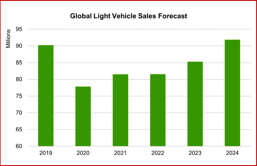 Global Light Vehicle Sales Forecast – courtesy of and copyright LMC Automotive